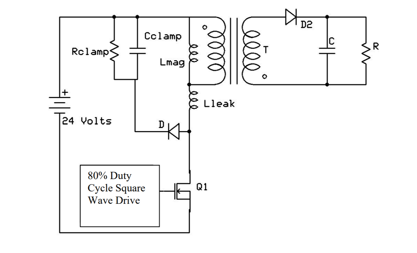 Built a 200V DC Power Supply with Transformer and Clamp that operates at CCM (Continuous Conduction Mode) with a nominal voltage across Cclamp of 120 V.
