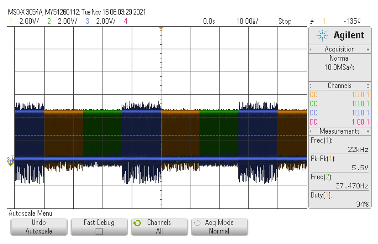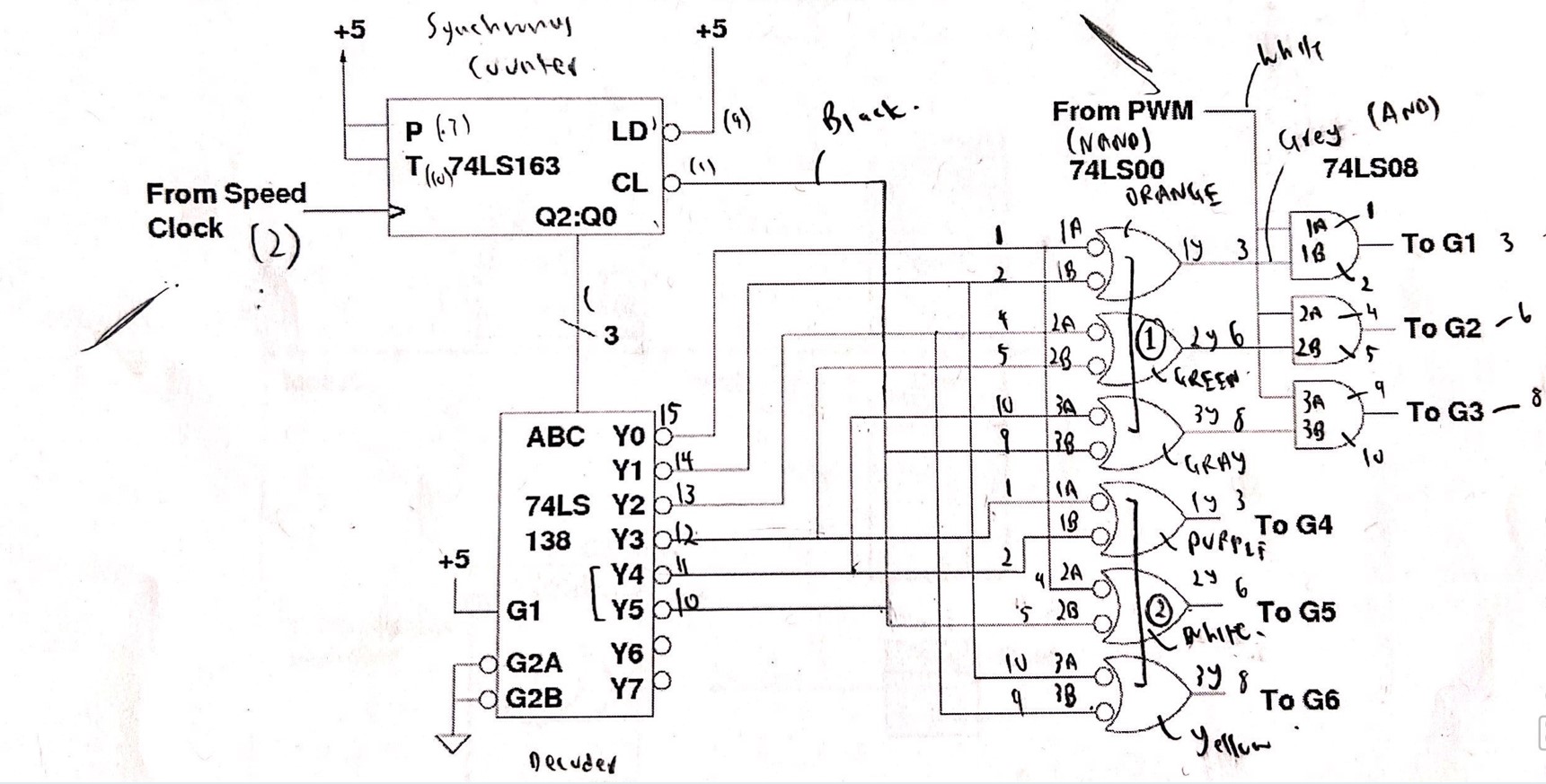 Finite State Machine Drive for Three Phase Bridge Induction Motor Drive. System is driven by 21 kHz PWM Oscillator with a variable duty cycle.